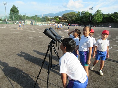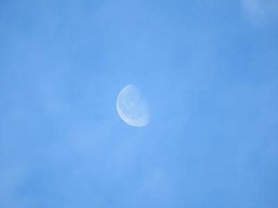 今朝は、西之空高く残っていた月を、双眼鏡で見ることができました。