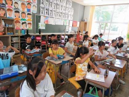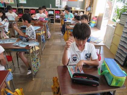 これから描く絵の題材として、遊具で遊ぶ、楽器を演奏する…