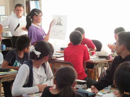 明治の国づくりを進めた西郷隆盛、大久保利通、伊藤博文などについてグループで調べたことを伝え合いました。