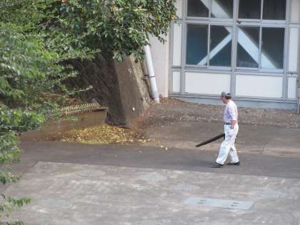 用務員さんは、落ち葉を集めていました。