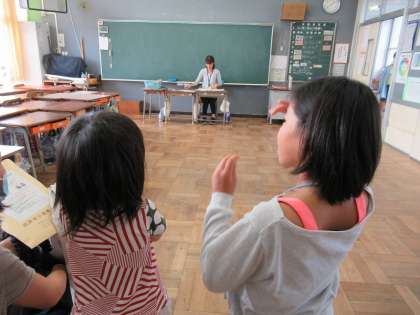 子どもたちは、6年生に連れられて、いろいろな健診を受けていました。