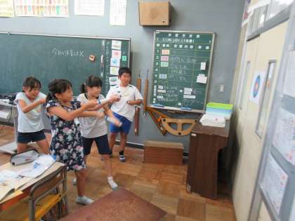 どうしたら勢いよく飛ぶのか、遊びを通して考えました。