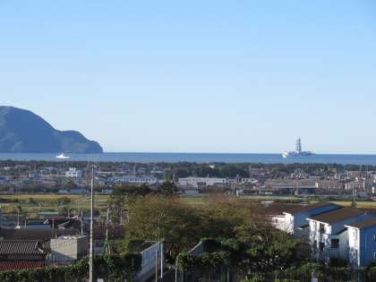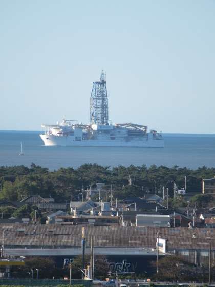 11日(金)に南校舎3階から、すでに確認していた『地球深部探査船 ちきゅう』。