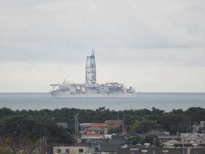 地球深部探査船ちきゅうは、まだ、沖合に停泊していました。