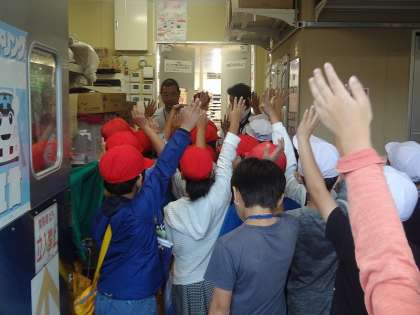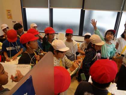 ふだん入ることができない場所で、目にする機会のない裏側を知る子とができ、子どもたちは真剣な表情で取り組んでいました。