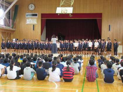 最初に、連合音楽会で歌う合唱を聴かせていただきました。