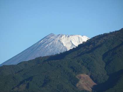 10月23日(水)の朝、すっきりと晴れ、雪をかぶった富士山が見えています。
