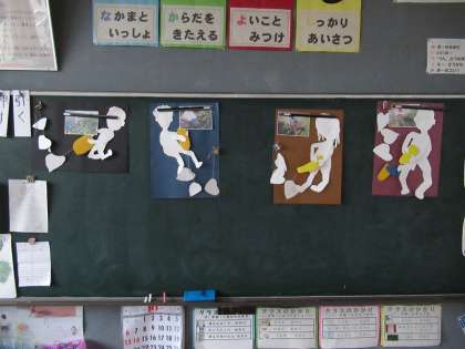 なかよし学級の黒板に、図工の作品が掲示されていました。