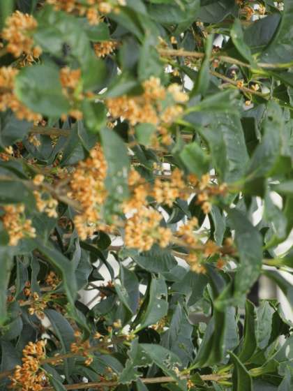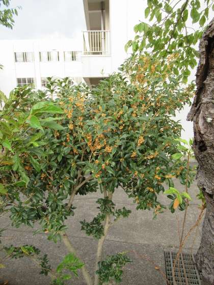 花は濃い黄色で小さいのですが、香が遠くまで漂っていました。
