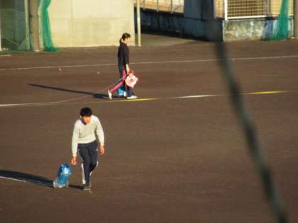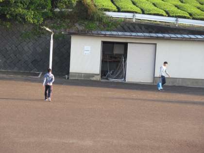 先生方は、朝運動用のラインを引いていました。