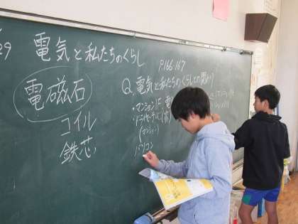 どのような形で暮らしに役立っているのかを考え、グループで話し合ったり、黒板に書き出したりしました。