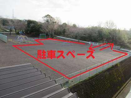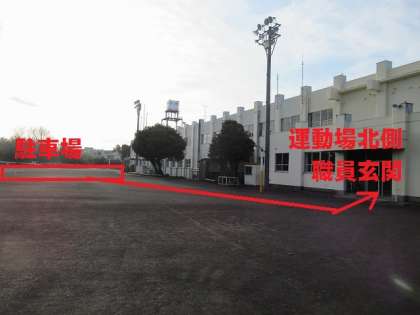 【駐車場】学校東側の門を開放しますので、運動場東側に駐車してください。