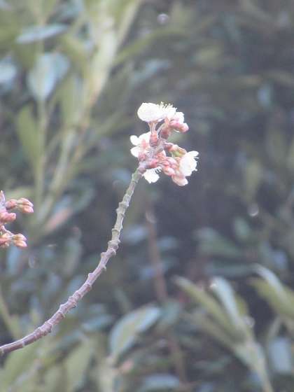 鷹の子森のサクラは、数輪ですが、梢で開花していました。