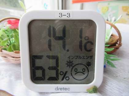 3階教室の気温・湿度は、14.1度・63%でした。