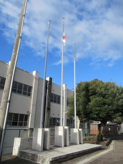 3月11日(水)の朝の愛鷹小 3 『半旗を掲げ、追悼の意を』