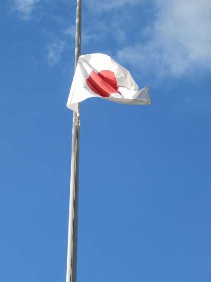 掲揚塔に半旗を掲げ、追悼の意を表しました。