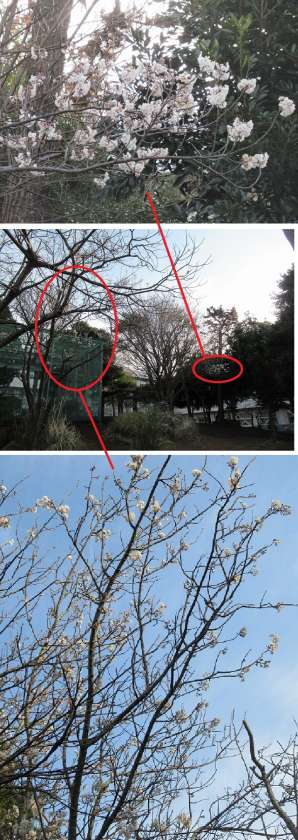 ある枝だけ開花が進んでいる木、全体的に開花が進んでいる木…