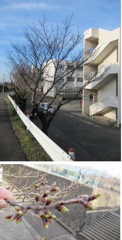 【下】学校東側のサクラは、つぼみがふくらんできていますが、まだまだです。