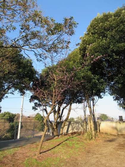 見〜つけた  『鷹の子森の紅梅、開花が進みました。』
