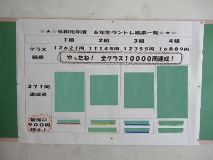 6年生のラントレの結果が掲示されていました。