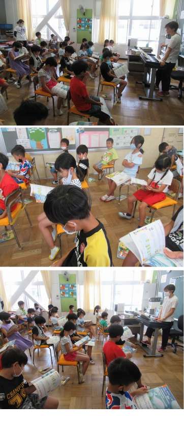 「ぷっかり くじら」のCDを聞いたあと、場面を想像しながら歌いました。