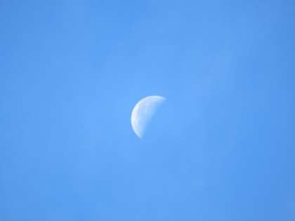 朝、4年生の子供たちが登校した後、ベランダで月を観察しました。