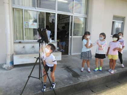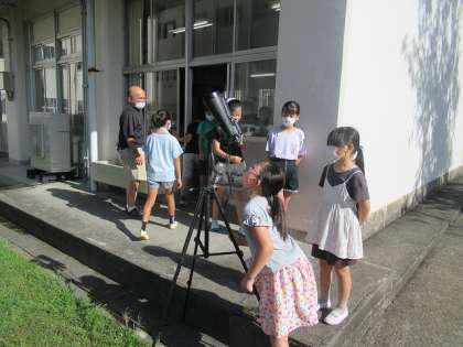 朝の月を双眼鏡で観察しました。(9/11)  4年・理科