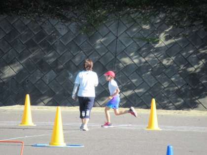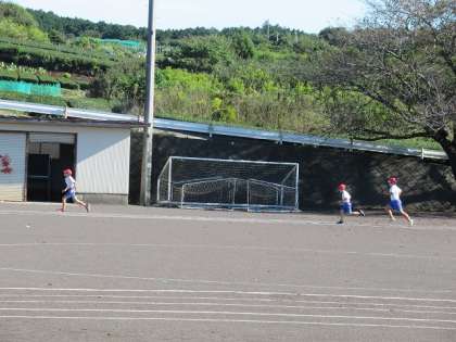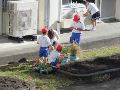 運動場で100mダッシュの練習をした後、花壇に行って苗を植える準備をしました。
