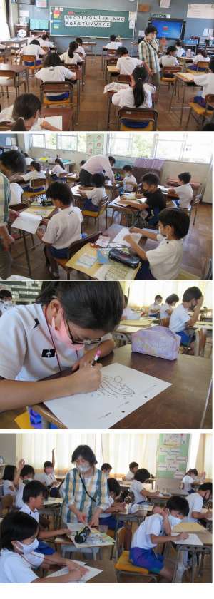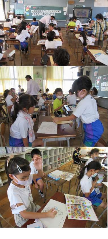 アルファベットになれるため、プリントに書かれたアルファベットを順に線でつなぎました。