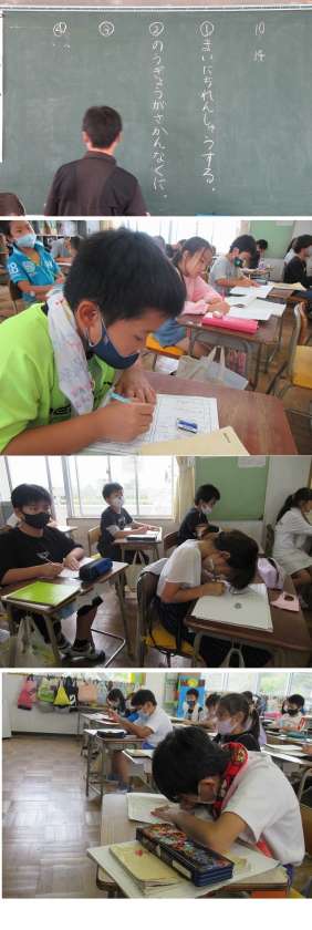 国語の時間の最初に、漢字の5問テストに取り組みました。