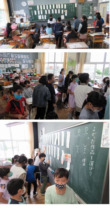 それぞれが作った俳句を黒板に貼りだしました。良いと感じた作品に投票しました。