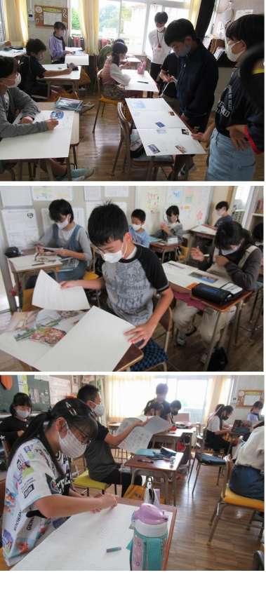 パソコン室で調べたことなどを元に、沼津ツアーを画用紙に表現しました。
