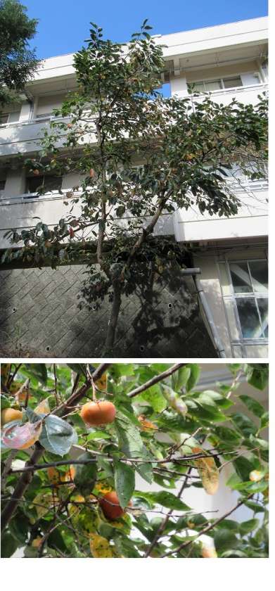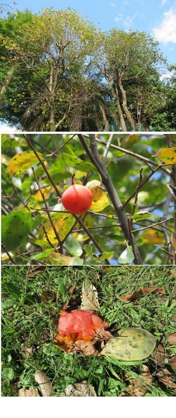 鷹の子森耶蘇の周辺の柿の木に、柿が実っていました。