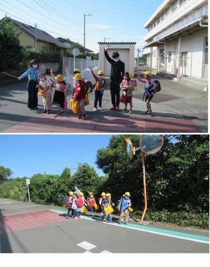 教室でルールについて学んだあと、下校に合わせて横断歩道の渡り方や道の歩き方を指導してもらいました。