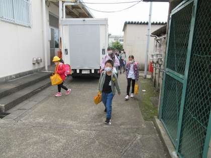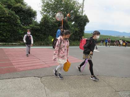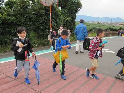 午後から雨の予報が出ているので、傘を持って登校する子どもの姿が見られました。