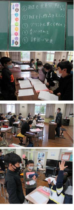 個々で考えたリズムをグループで検討し、いいものを1つ選びました。