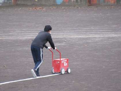 早朝から先生方が体育大会の準備に取り組んでいました。