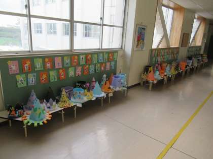 図工担当の先生が、帽子をかぶった写真を撮ってくれ、それも掲示してあります。