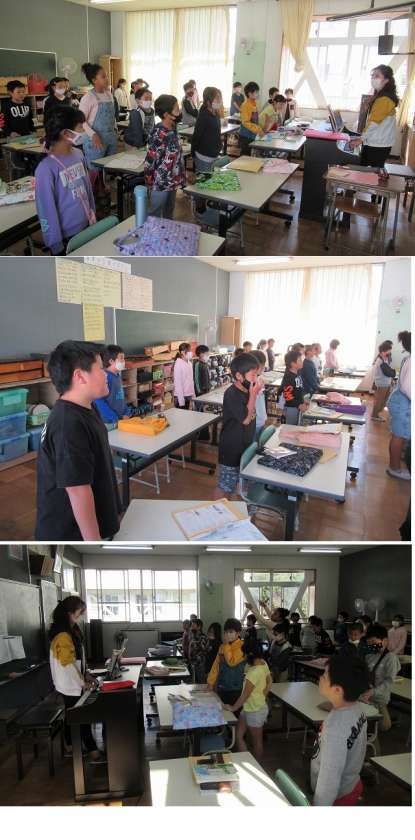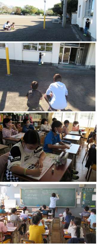 運動場で鏡を使って光を集めた時の暖かさを体感しました。