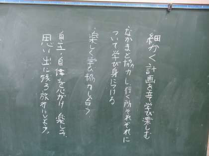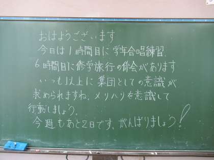 昨日の続きの修学旅行のめあてについての話し合いのあとや、子供たちへのメッセージが書かれていました。