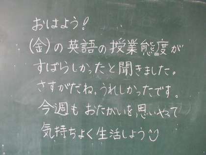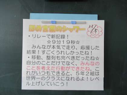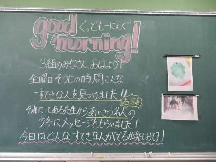 5年生教室の黒板には子供たちへのメッセージが書かれていました。