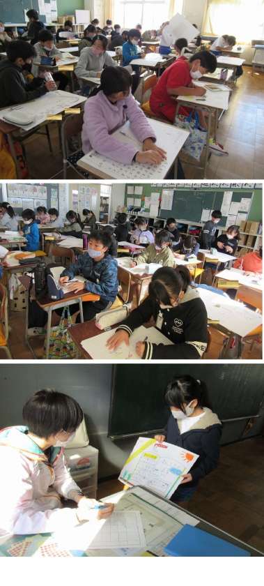 18日の感謝の会で発表する「お米」について調べたことを画用紙にまとめました。