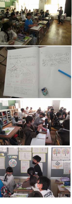 自動車工業について、「自動車」から連想する事柄を広げていったり、資料集をもとに自動車工業が盛んな地域の特徴を見つけたりしました。