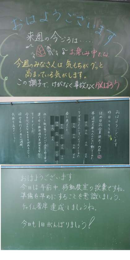 教室には、子供たちに向けたメッセージが書かれていました。