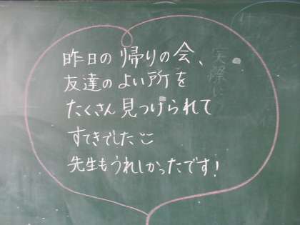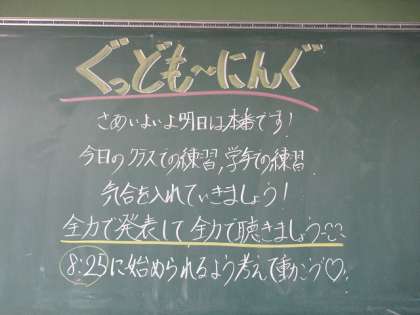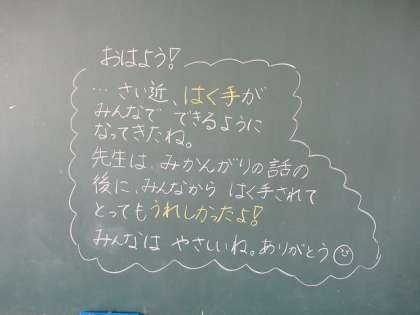 黒板には子供たちへのメッセージが書かれていました。