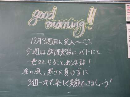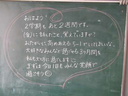 5年生教室の黒板には子供たちへのメッセージが書かれていました。