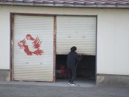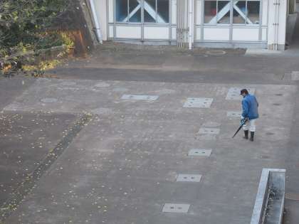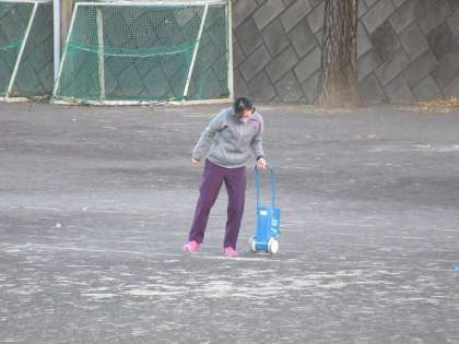 先生方は、運動場にラインを引いたり、体育器具庫を開けたりしていました。