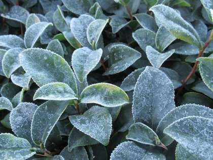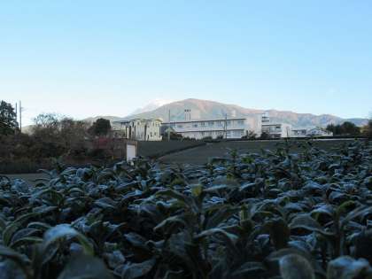 この冬一番の冷え込みで、茶畑などに霜が降りていました。