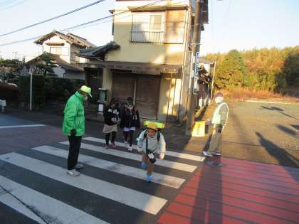 「横断歩道が凍って滑りやすくなっているよ。走らないで注意して渡ろう。」と声をかけてくれていました。