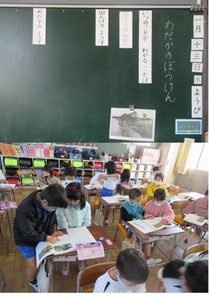 国語で、「めだかのぼうけん」の読み取りに取り組みました。